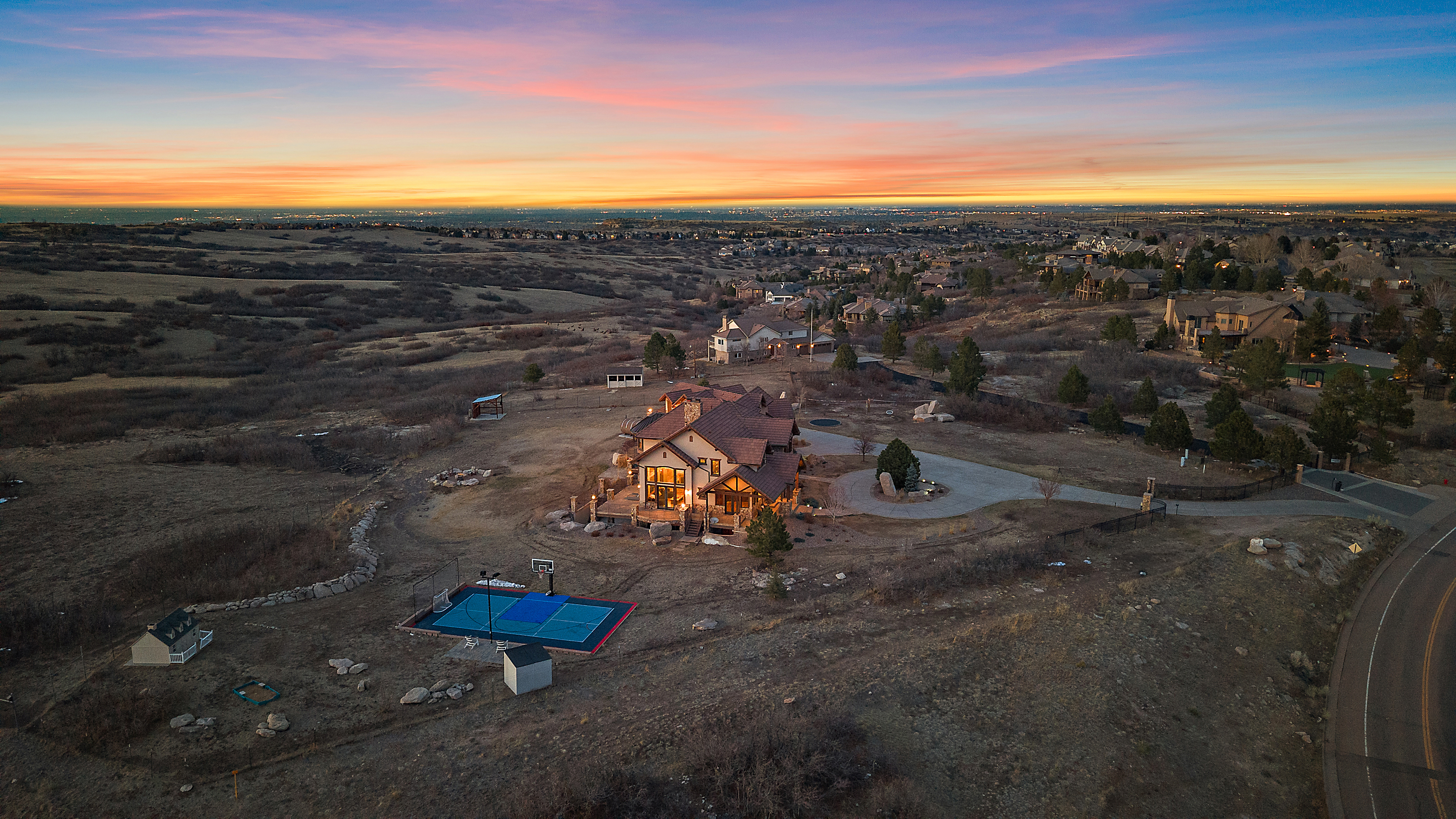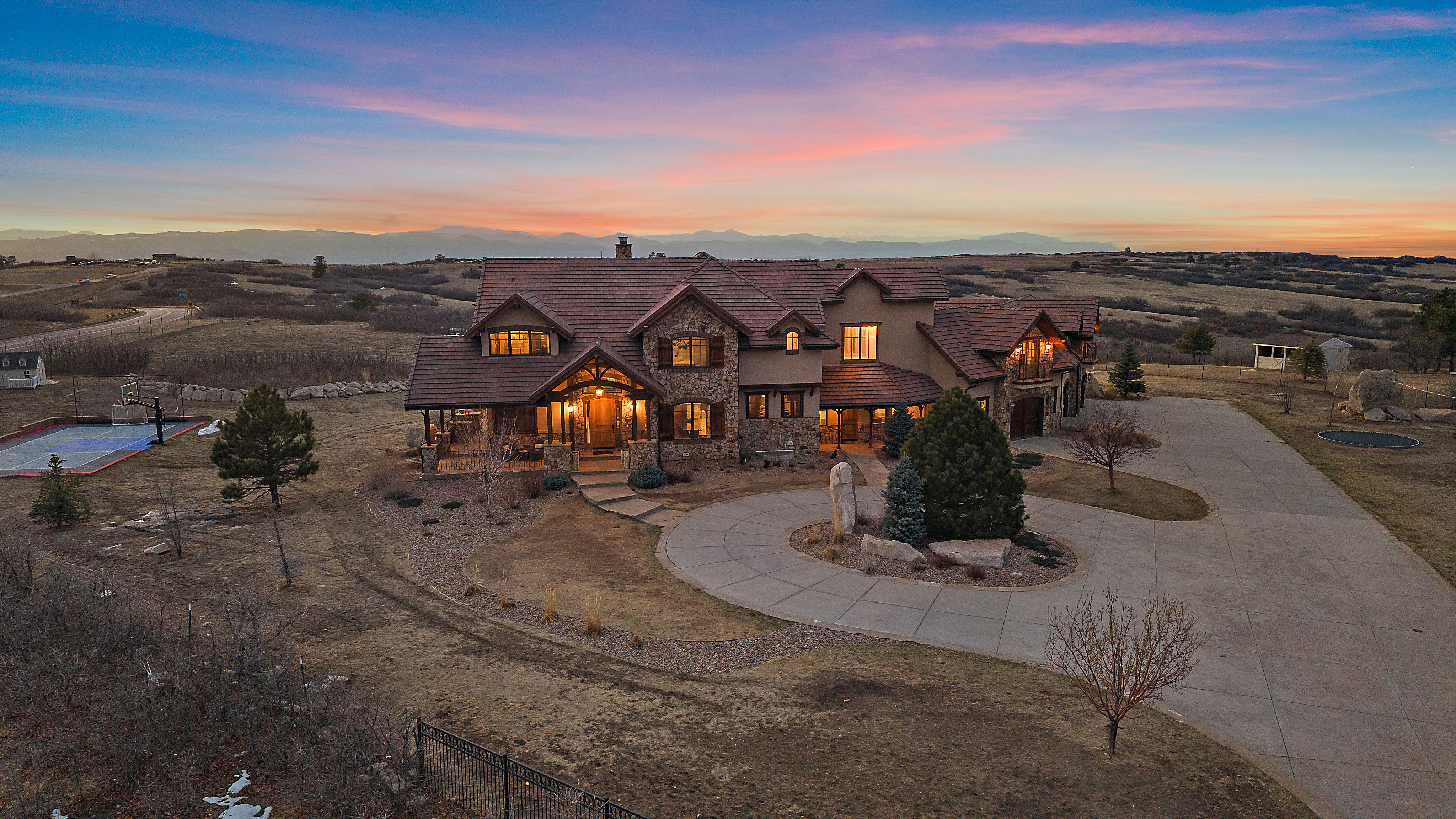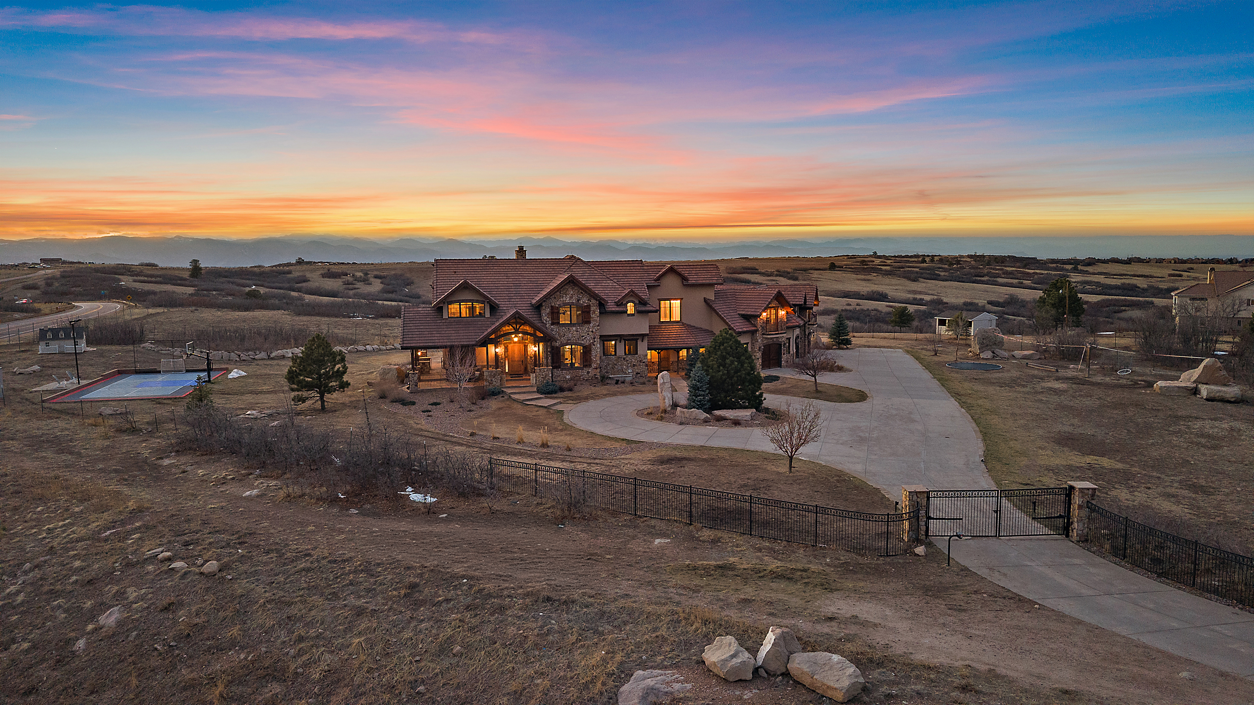 One of the only gated, no HOA custom estates in Castle Pines North, set on a nearly 2‑acre private lot in Castle Pines North