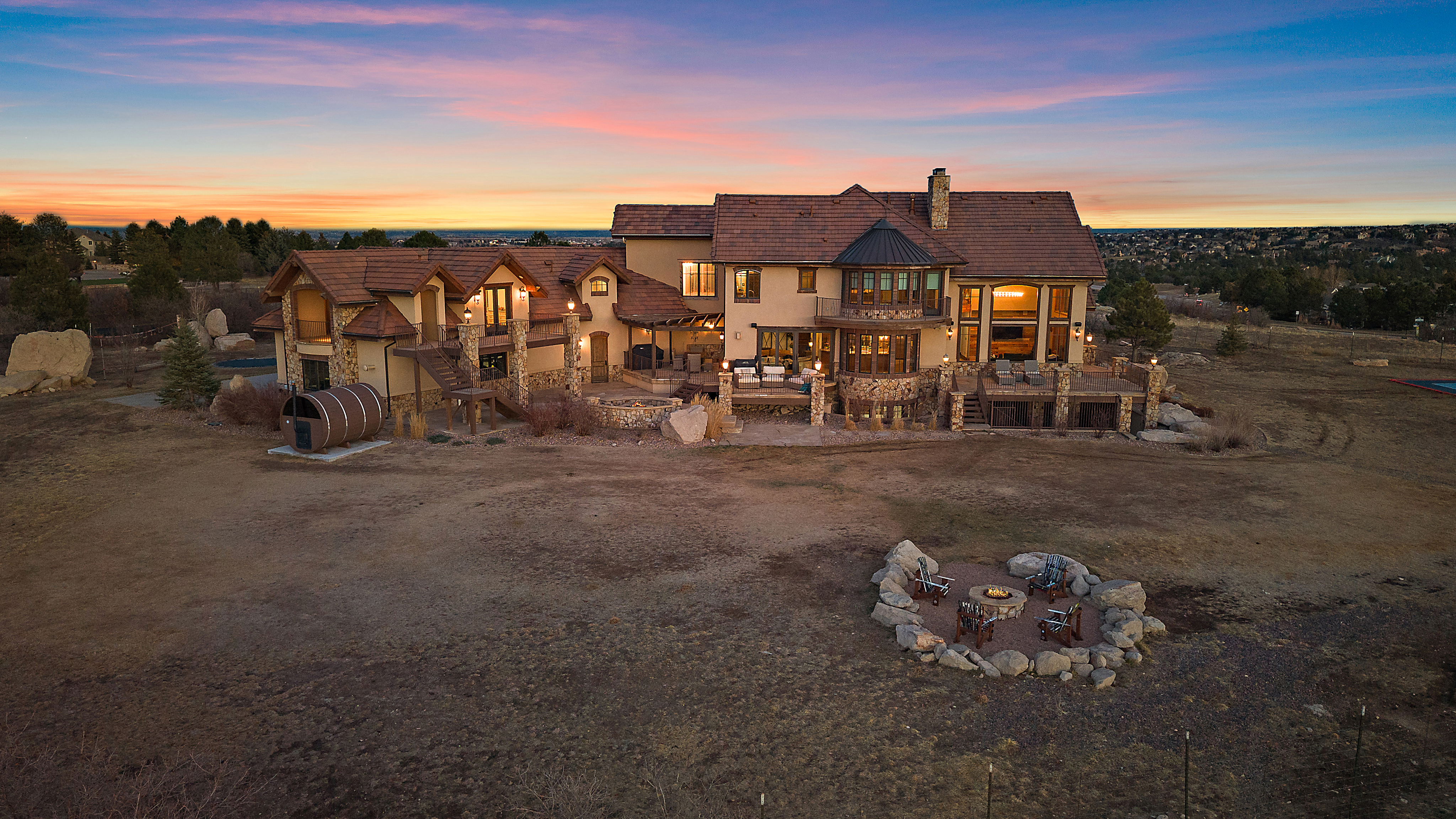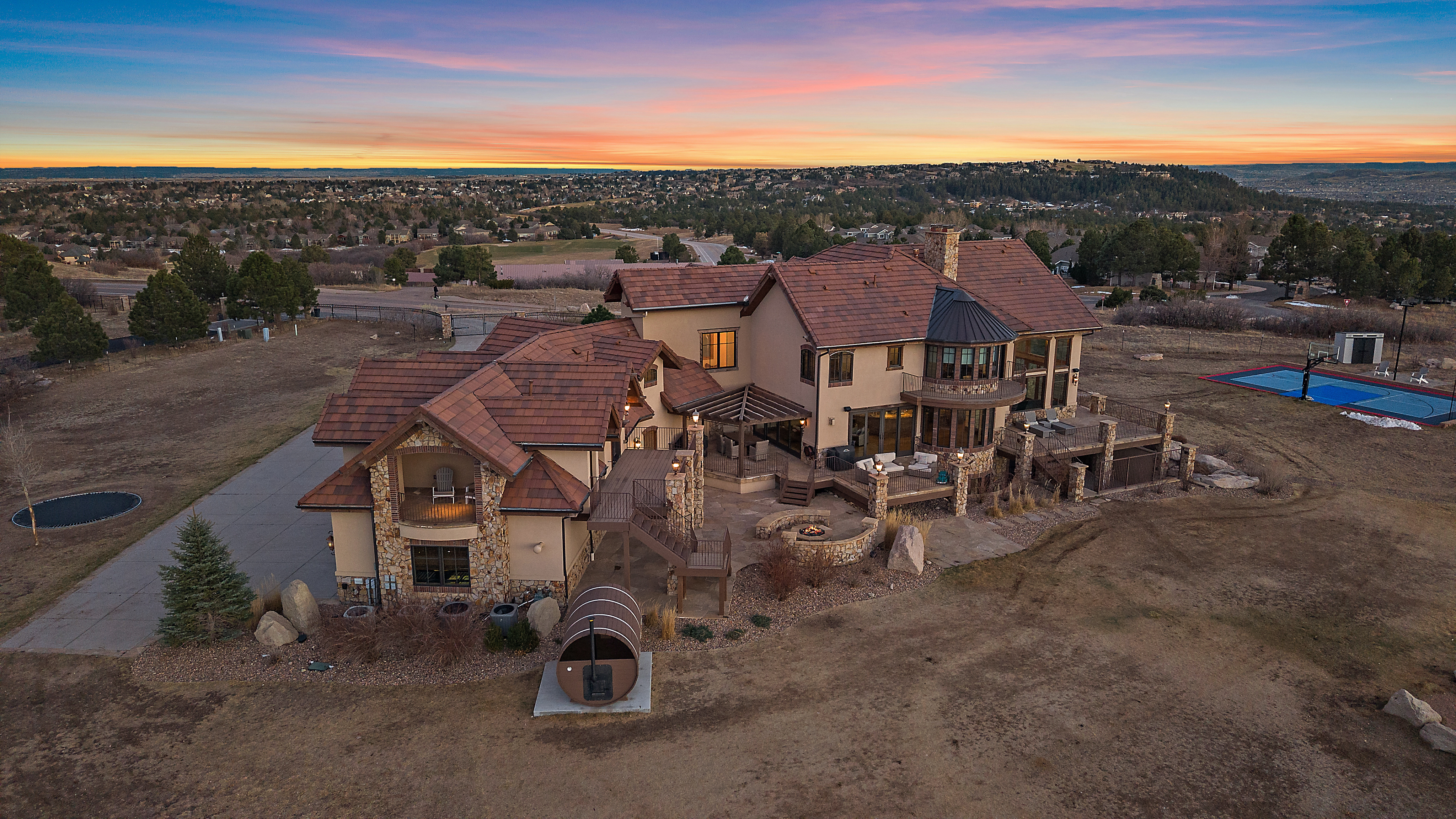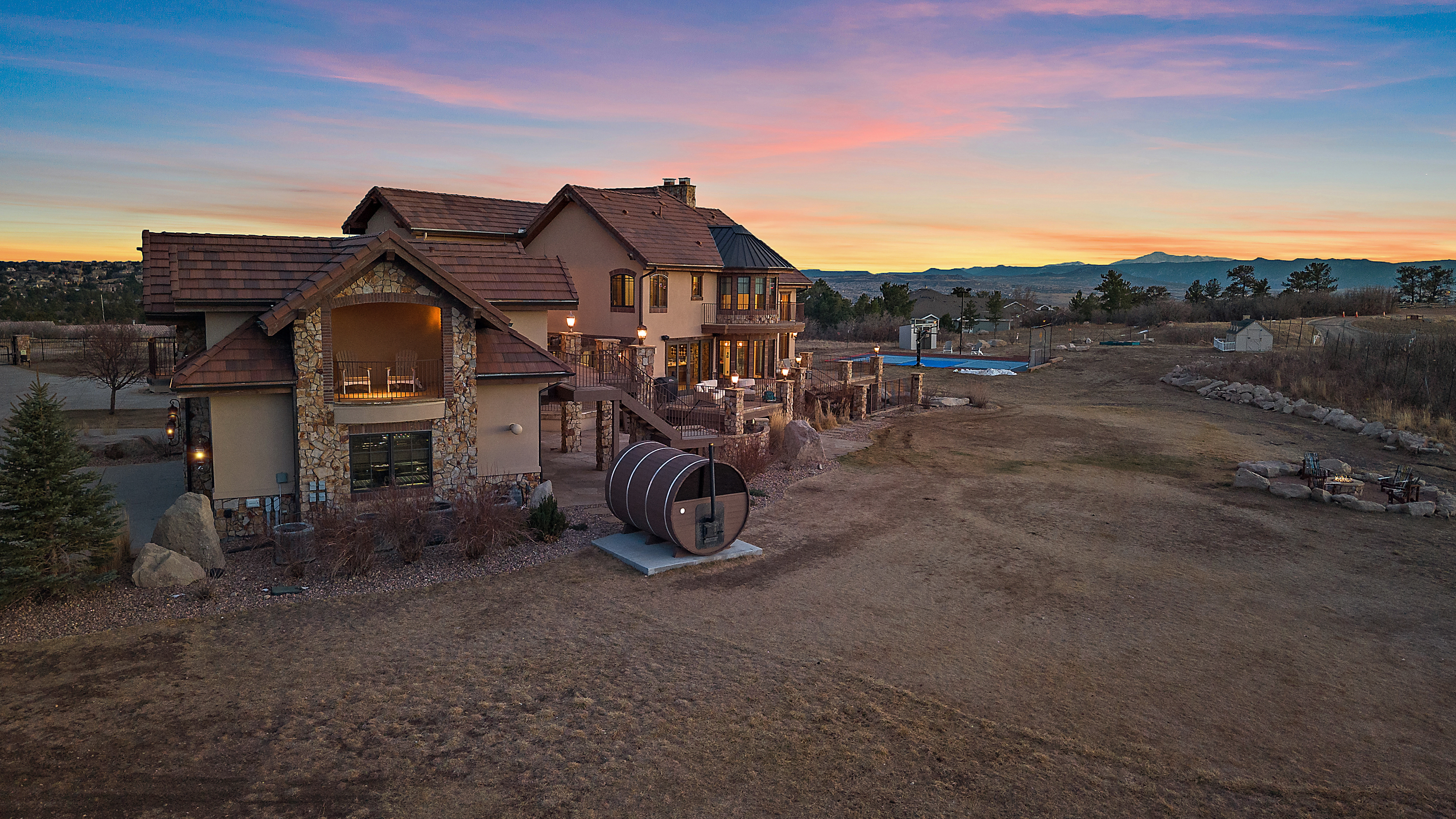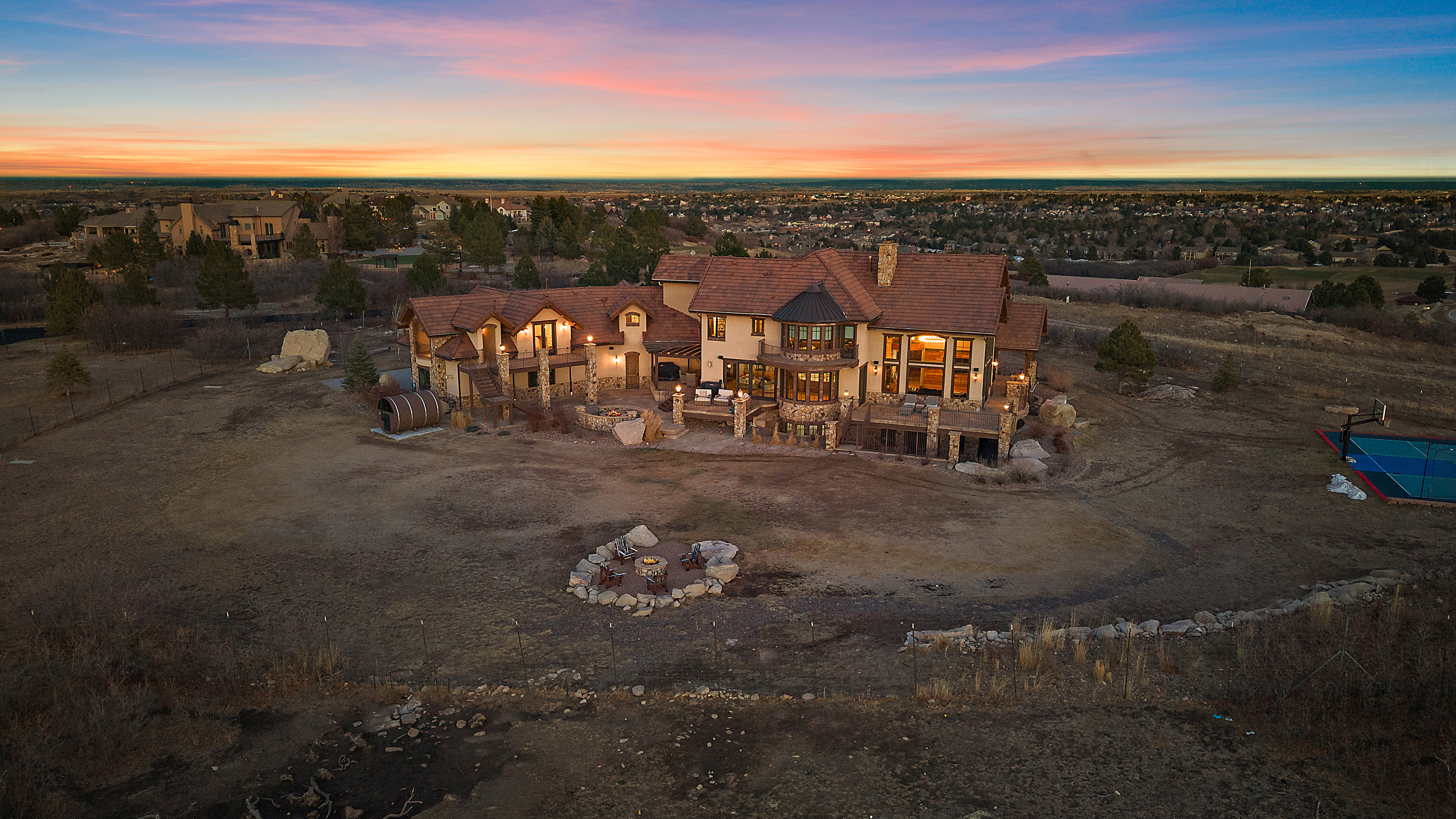 One of the only gated, no HOA custom estates in Castle Pines North, set on a nearly 2‑acre private lot in Castle Pines North