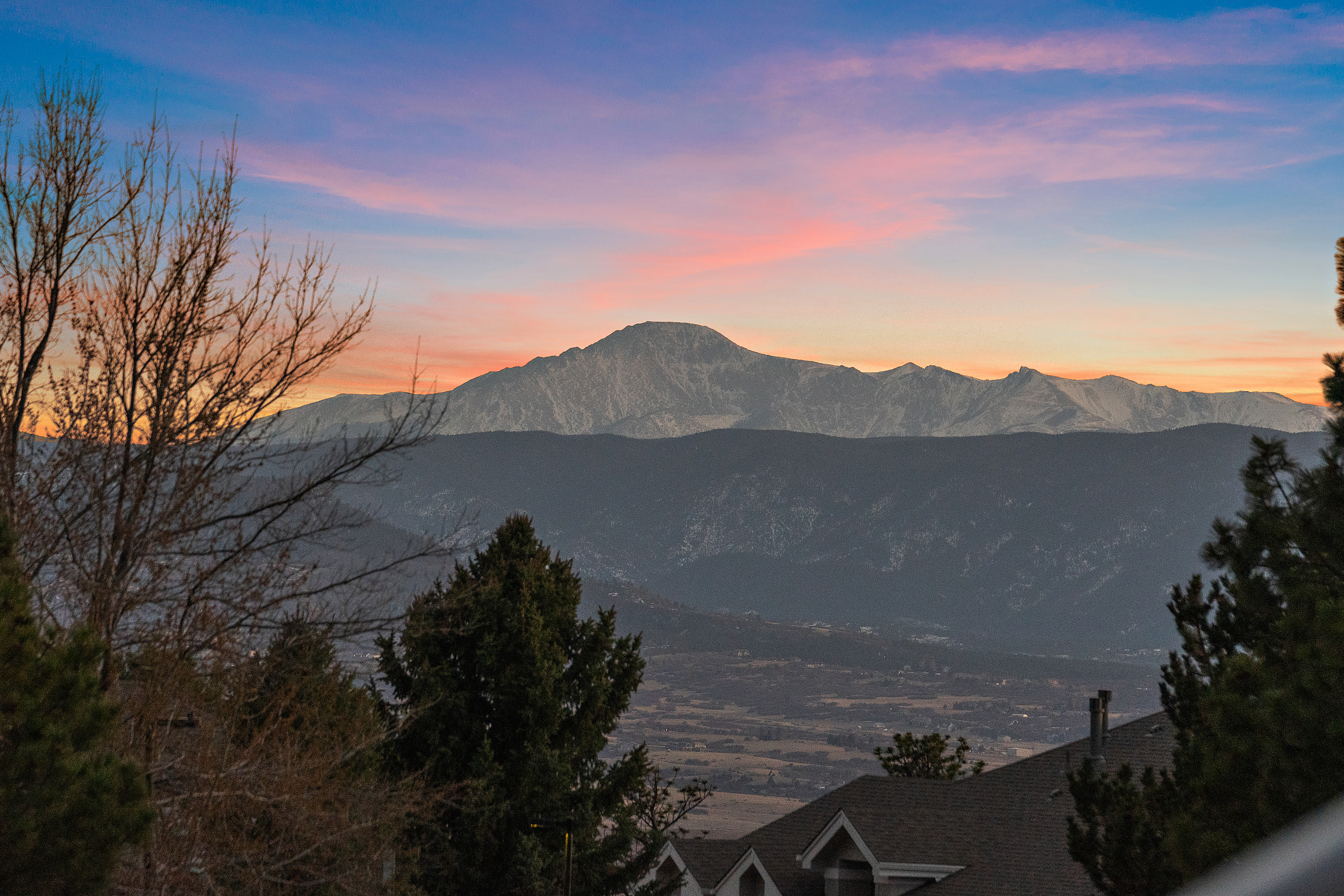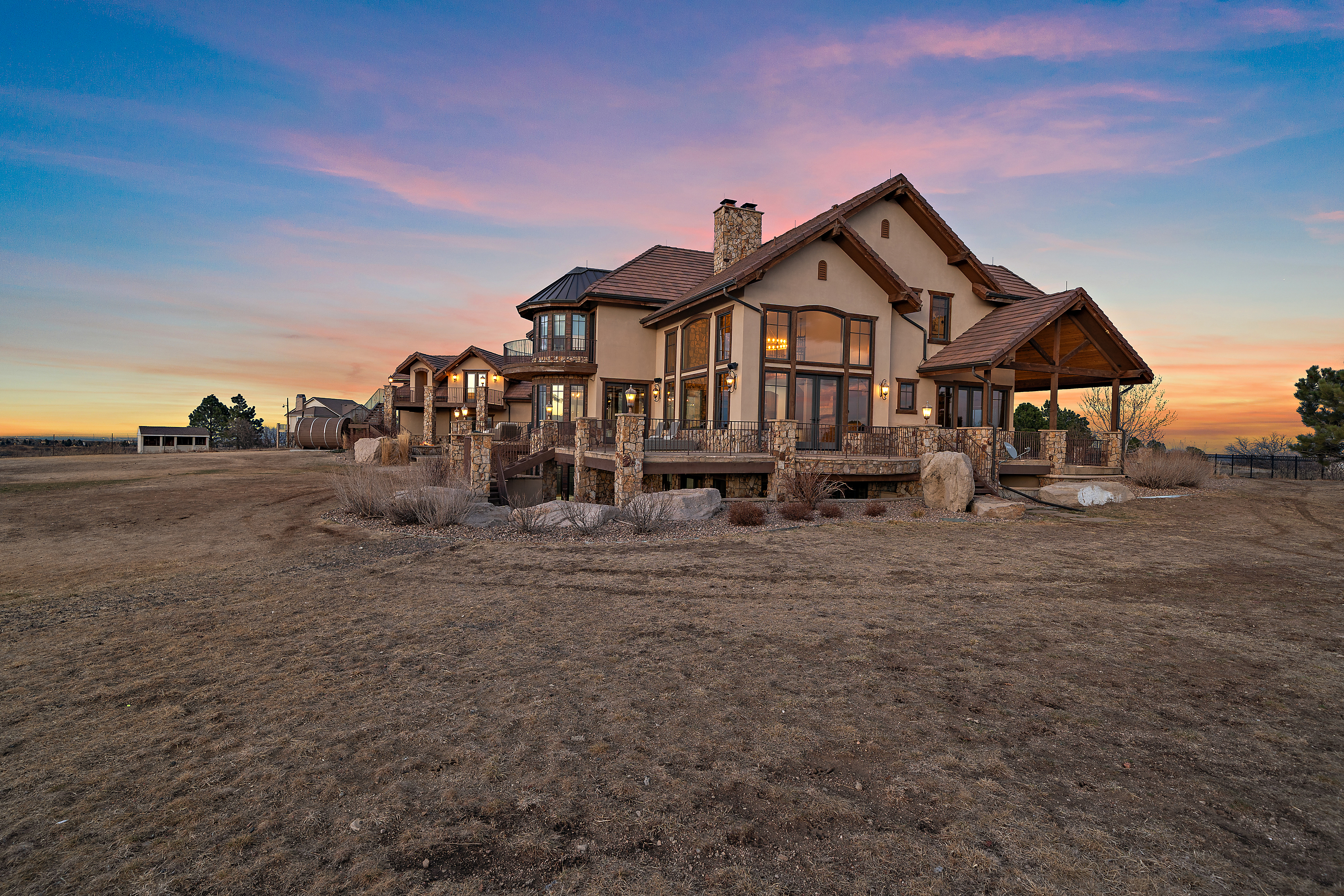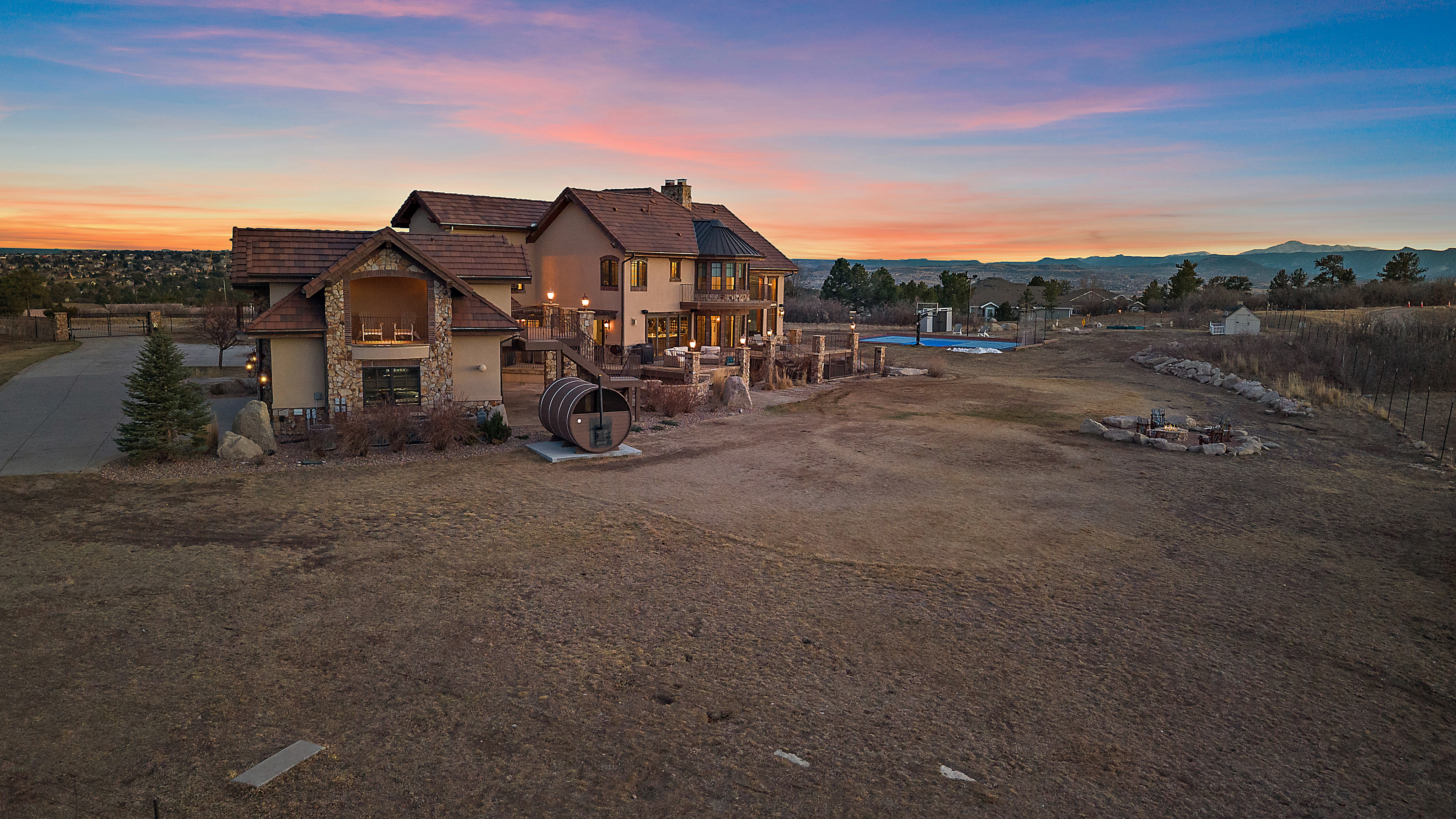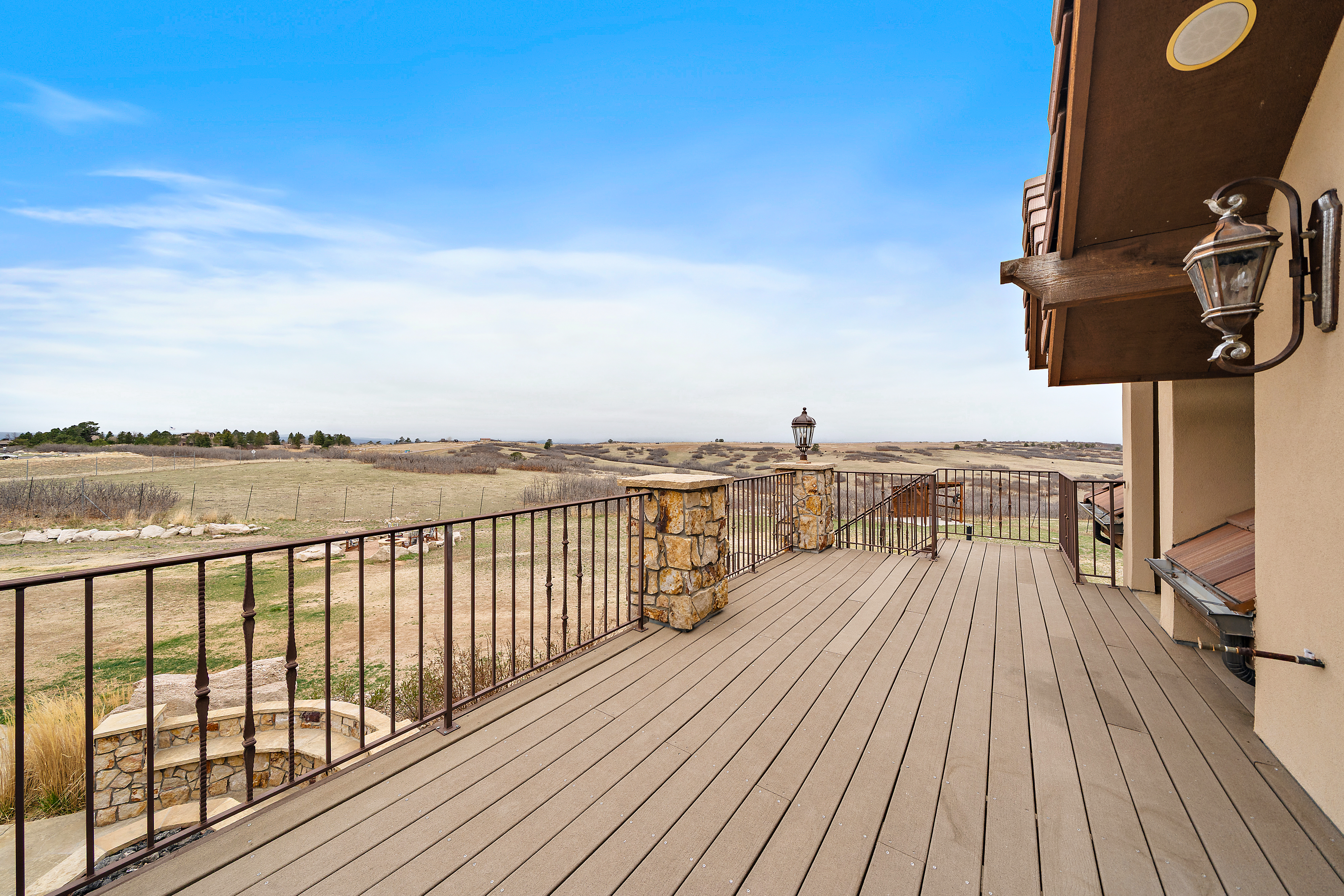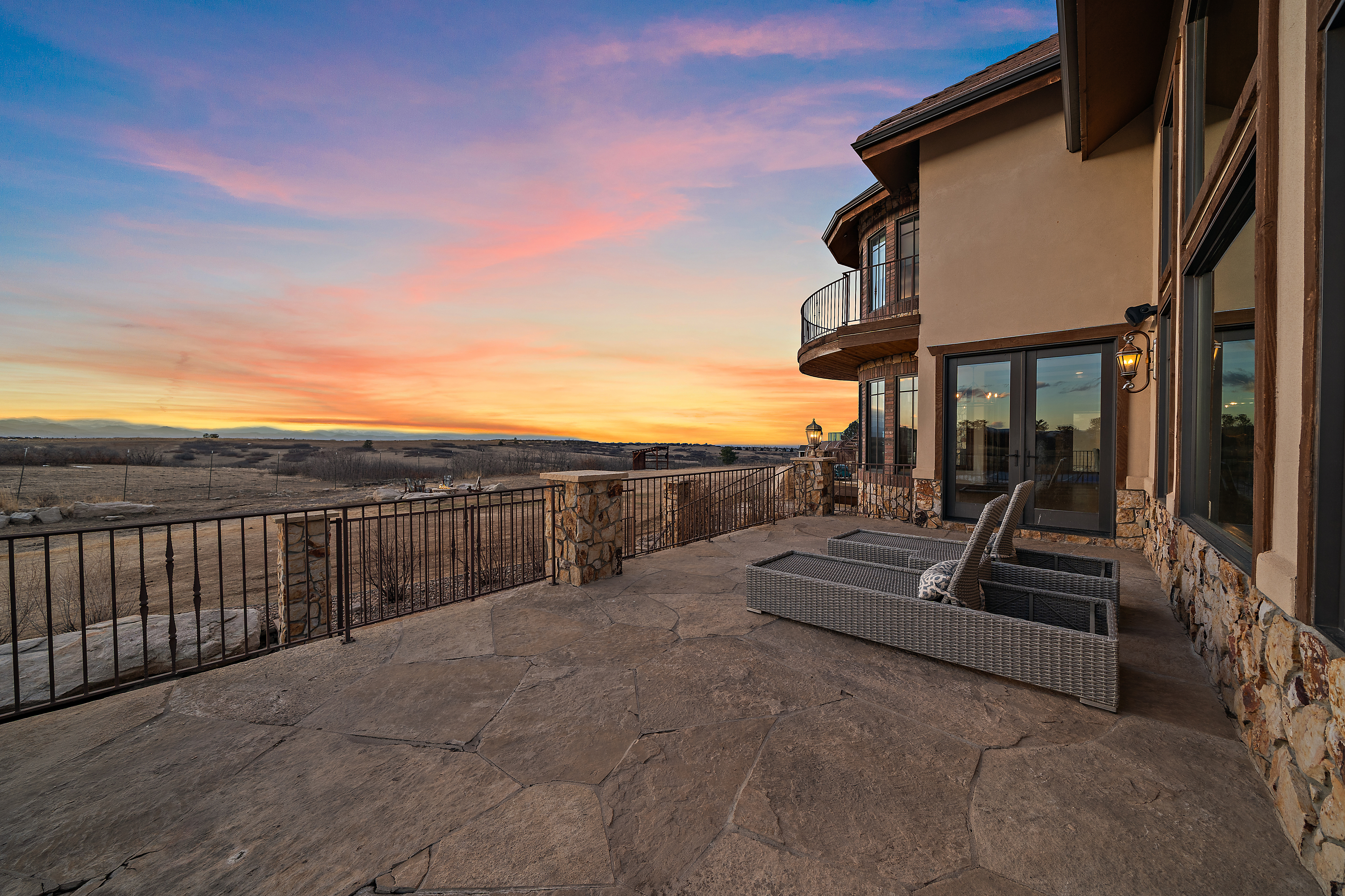 Unobstructed mountain views and true no HOA freedom define this custom estate on Buffalo Ridge. From Pikes Peak down toward downtown Denver, the entire west side of the home is oriented to the panorama, so the mountains, sunsets and wildlife are a constant backdrop from the great room, family room, kitchen, formal living area, primary suite and even the primary bath. The house sits high along Buffalo Ridge above Daniels Park and its bison preserve, tying directly into a larger system of protected rimrock open space, so you are looking over land that is intended to stay open rather than future rooftops. Every major space was designed around the view corridor: the wing over the garage, the main gathering rooms and the upper‑level primary with its curved sitting area and private balcony all face open land, with regular sightings of buffalo in Daniels Park along with elk, deer, hawks and eagles.