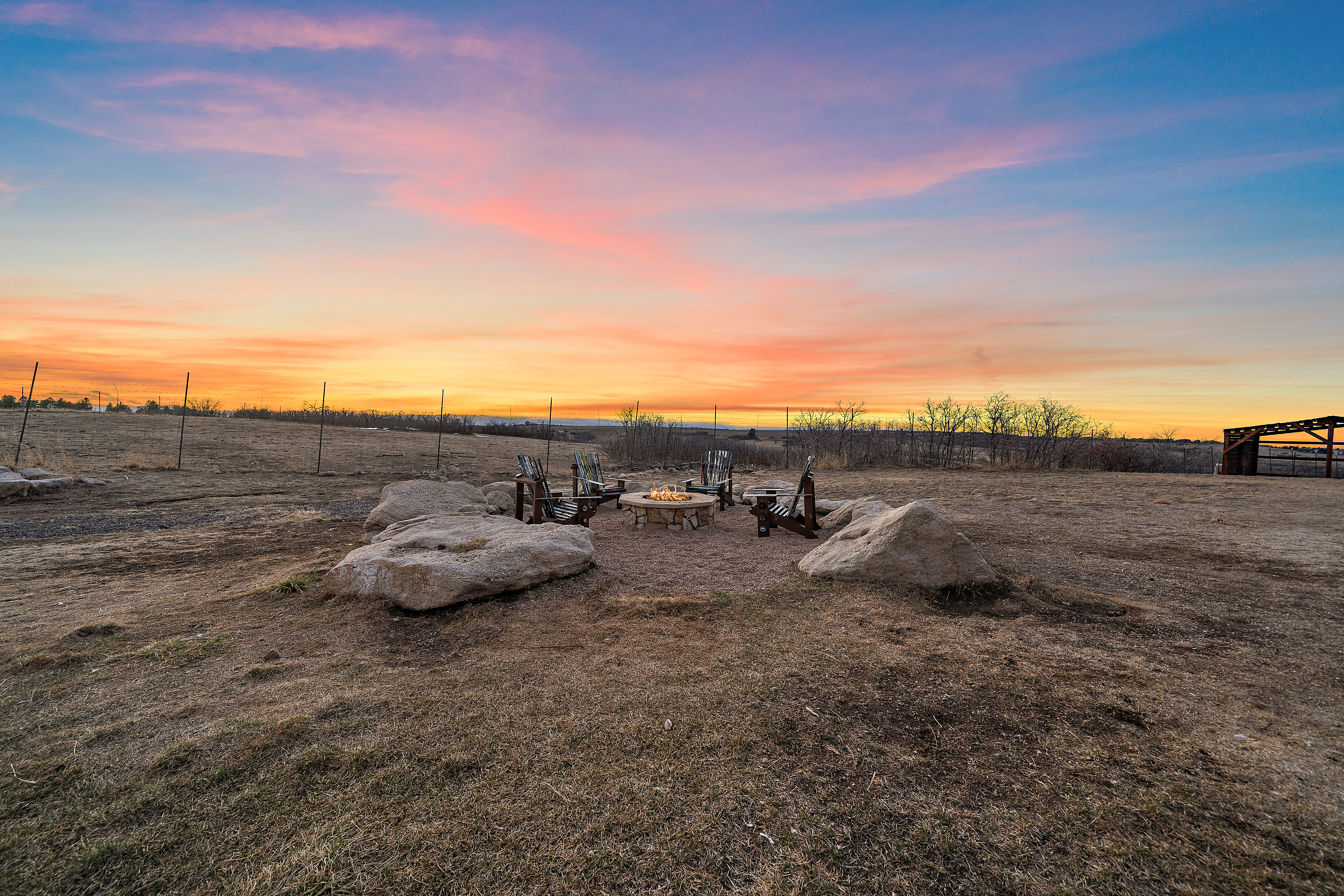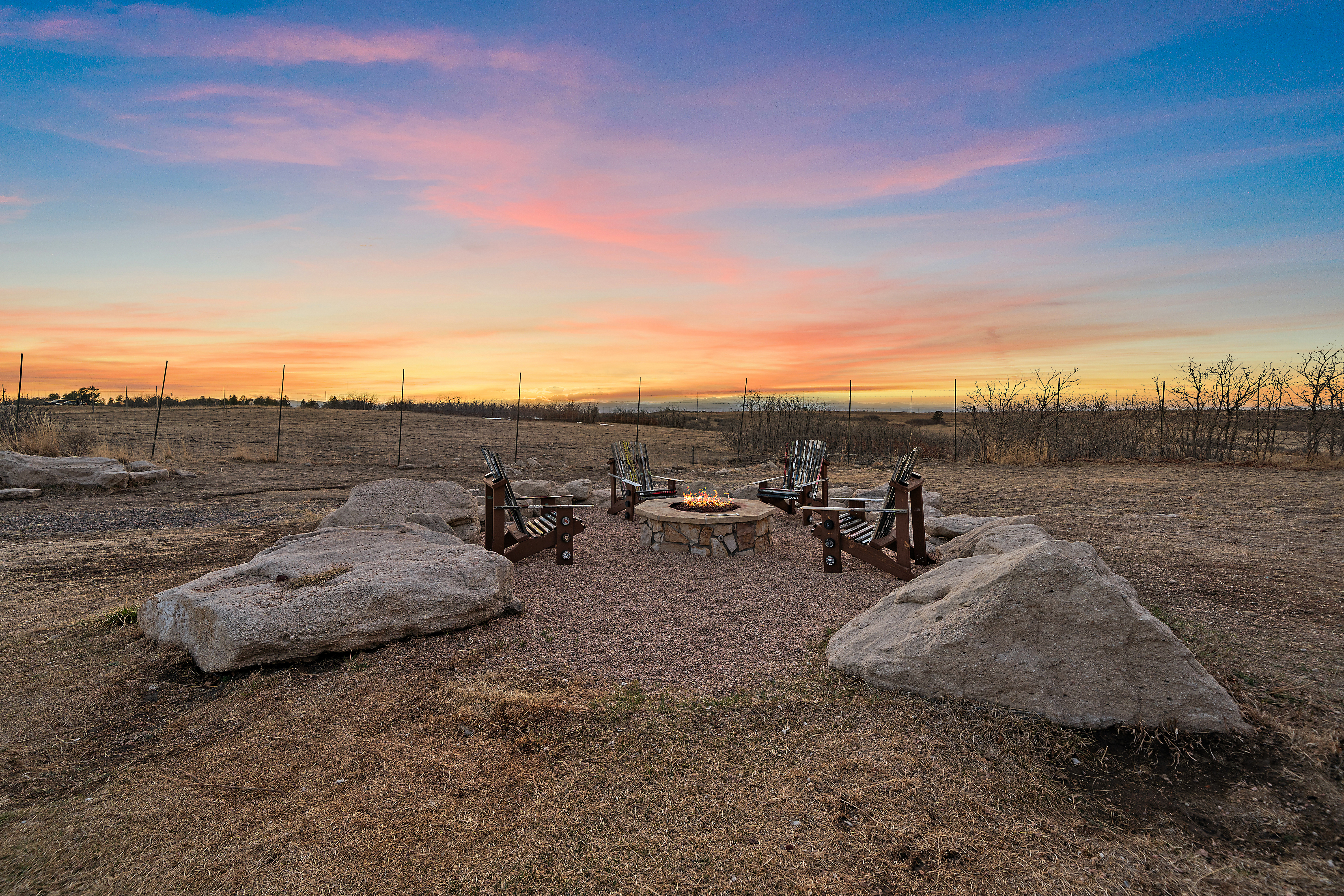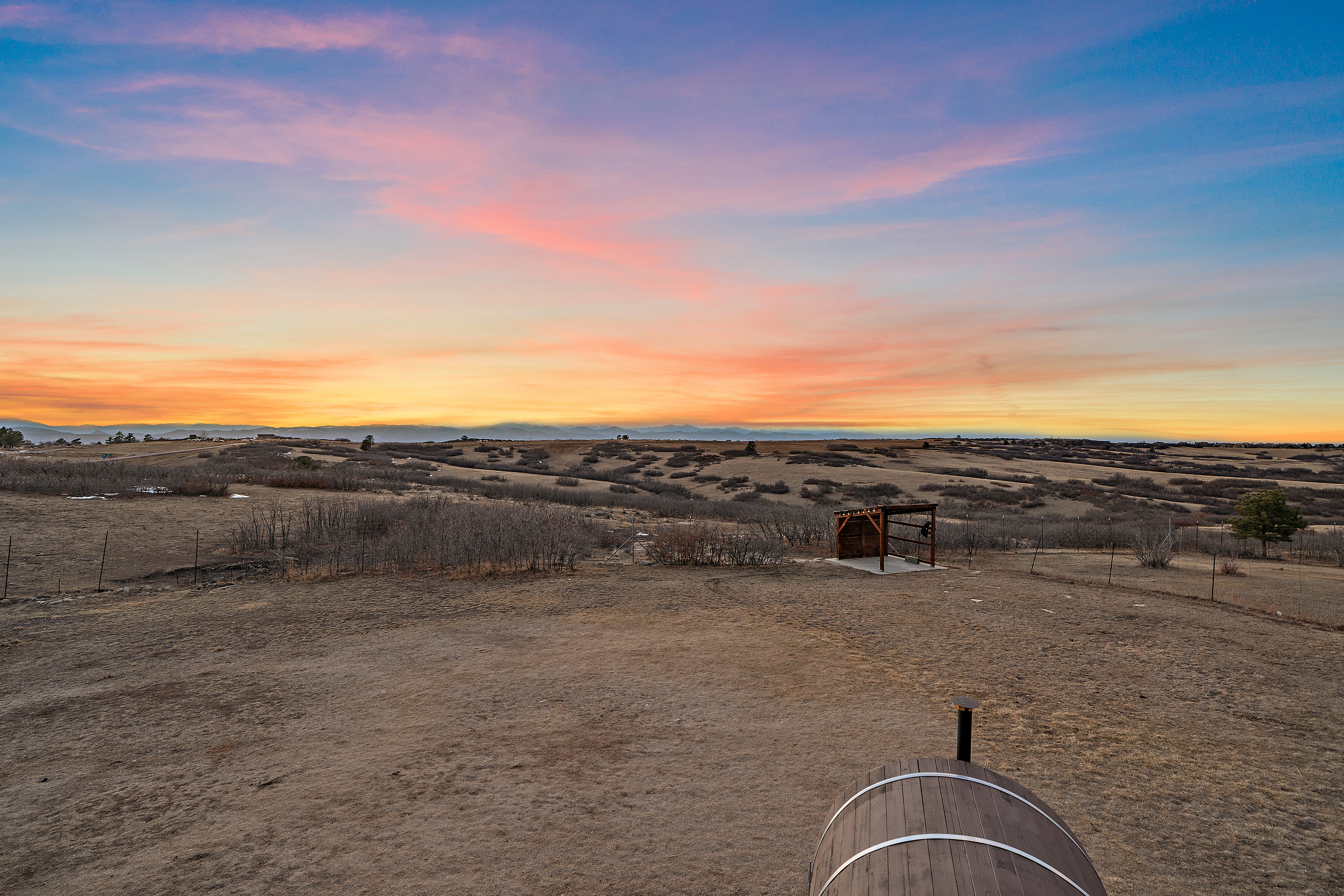 Unbroken front‑range and sunset views over Daniels Park and Buffalo Ridge open space, with buffalo and wildlife as your backdrop