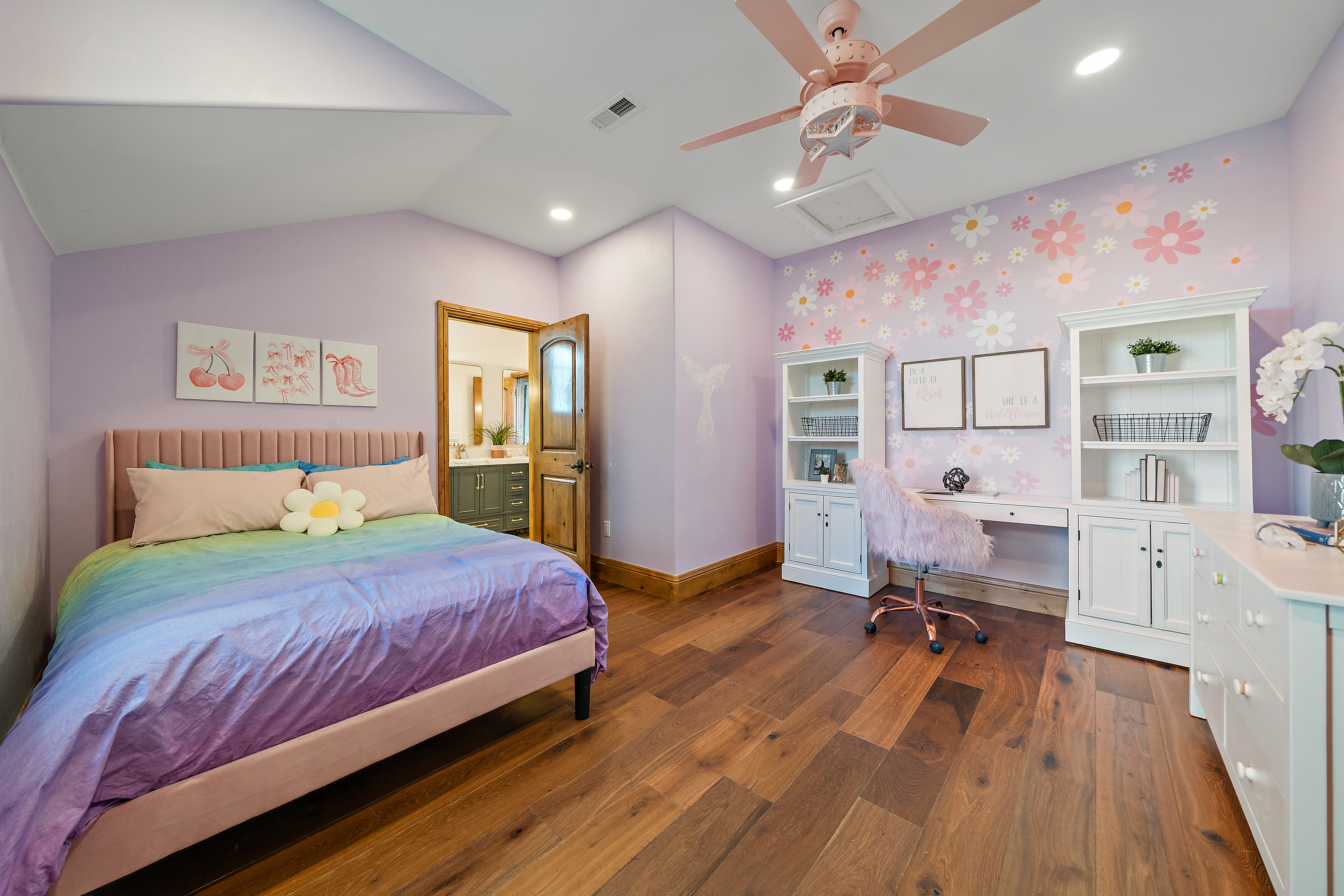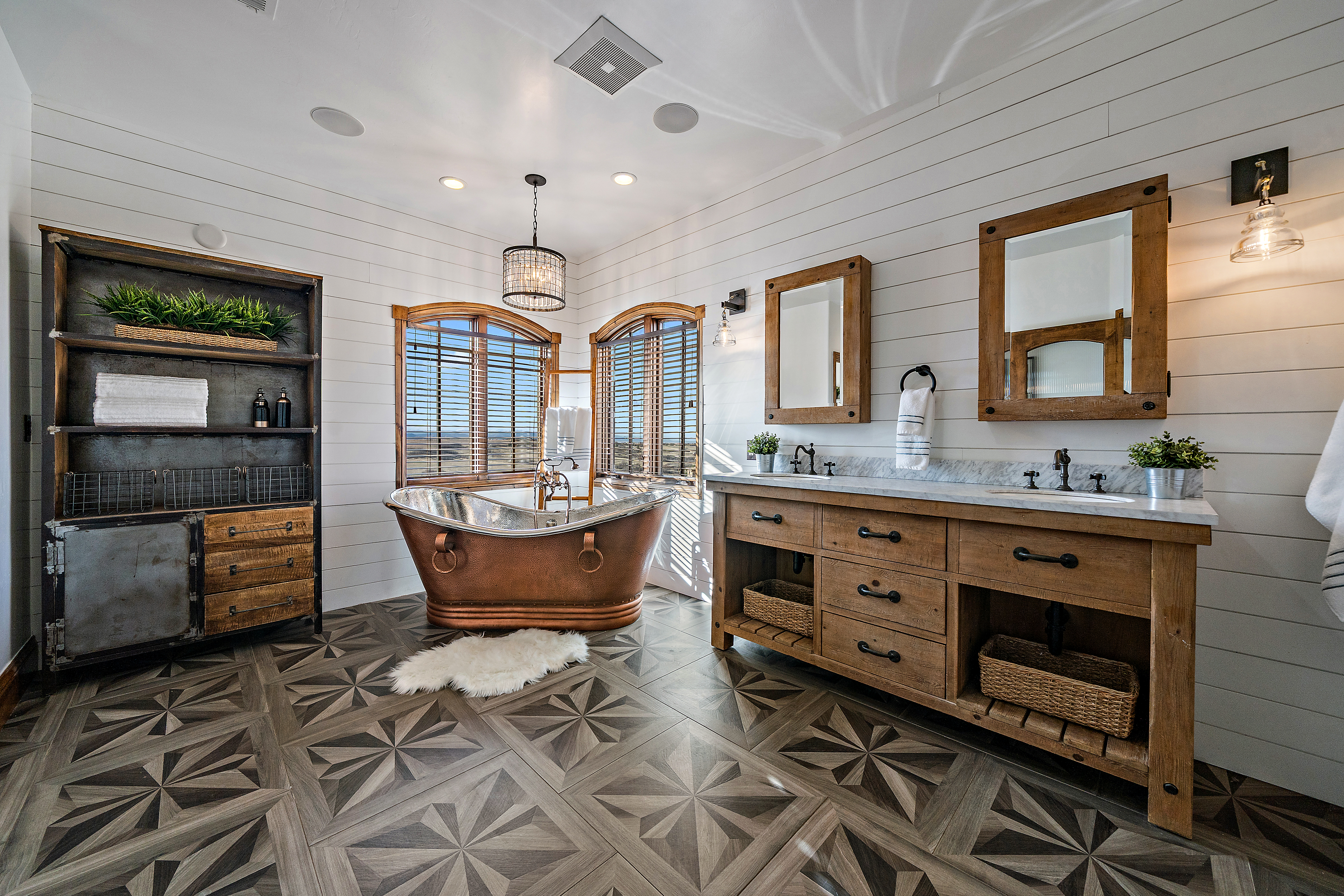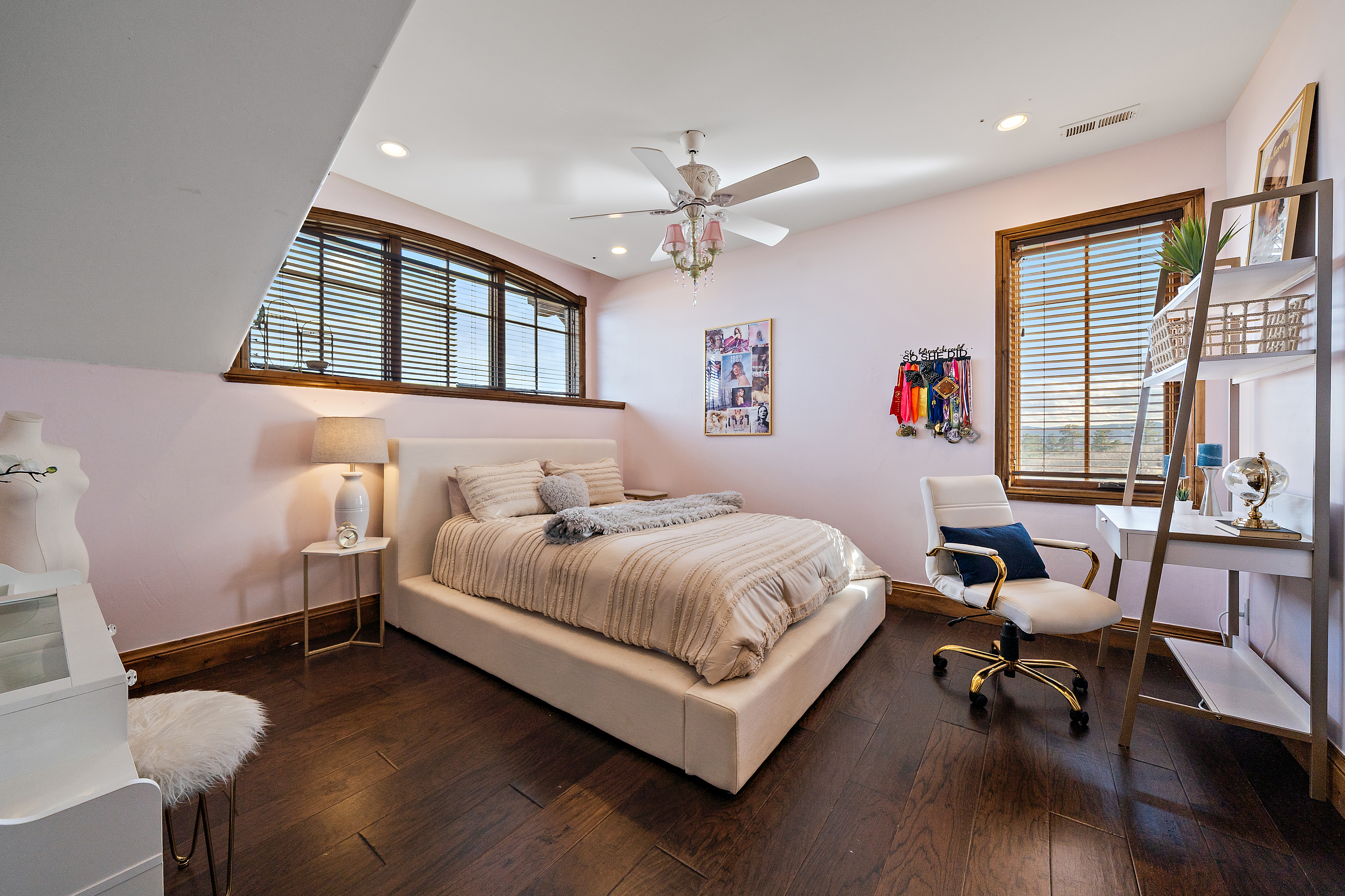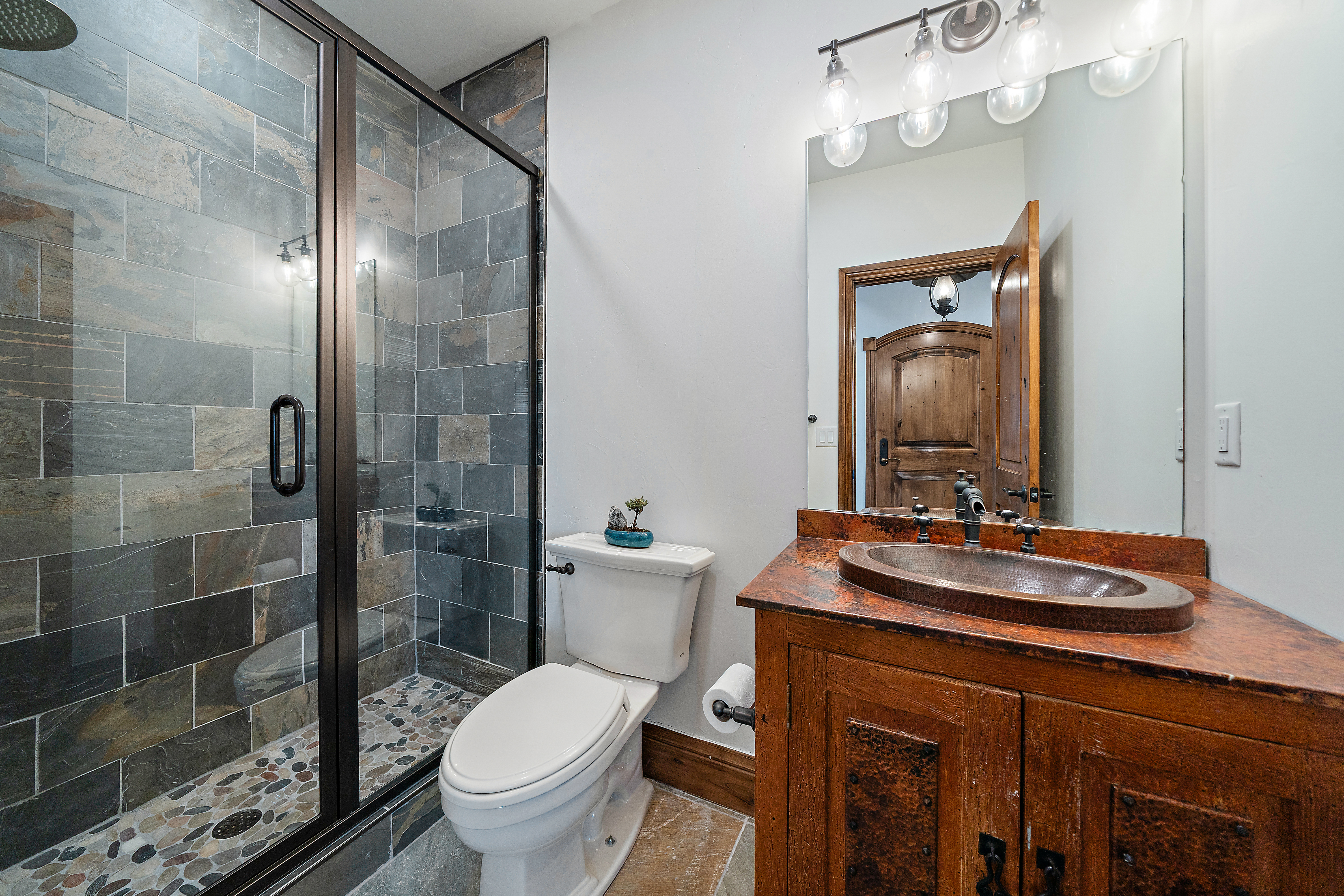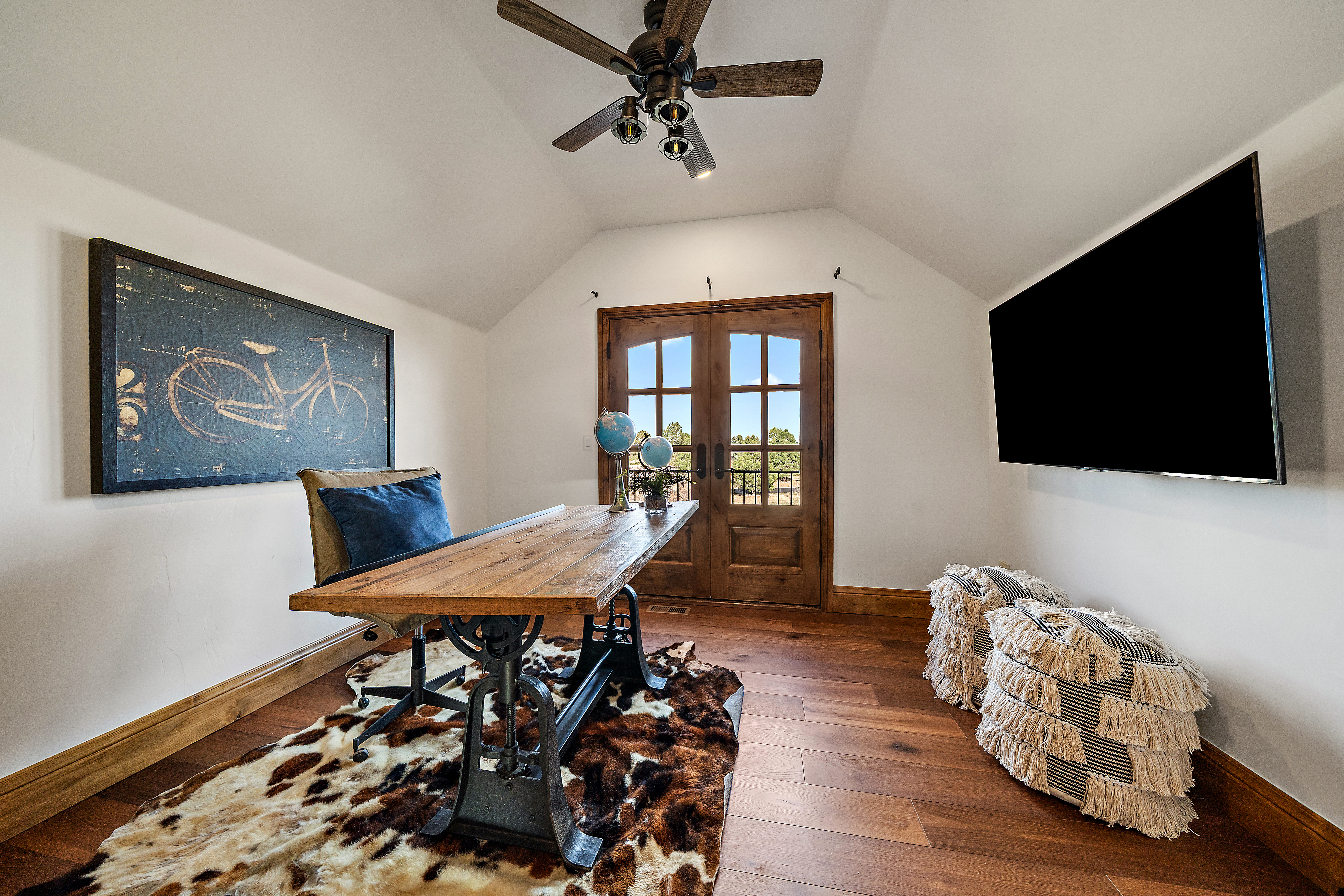 The primary suite sits upstairs behind double doors with a Juliet balcony open to the level below and electronic blinds that lift to a full sweep of mountains. The entire suite was re‑imagined: walls were moved to create a larger, more open walk-in closet with the bed wall reoriented to capture the view. The fully remodeled primary bath is a masterpiece and a true highlight, with an oversized steam shower, custom finishes and an eye‑catching freestanding tub set into a windowed corner that feels like a private spa. Nearby secondary bedrooms include a remodeled Jack and Jill bath between, a third bedroom with en-suite bath and all bedrooms offering walk‑in closets. On the new and improved upper level wing a bedroom is the twin room that can serve multiple purposes with plumbing behind the walls, multiple closets, a sitting area and its own tankless Rinnai water heater, giving a future owner options for guest quarters, a studio or even a small apartment‑style dwelling.