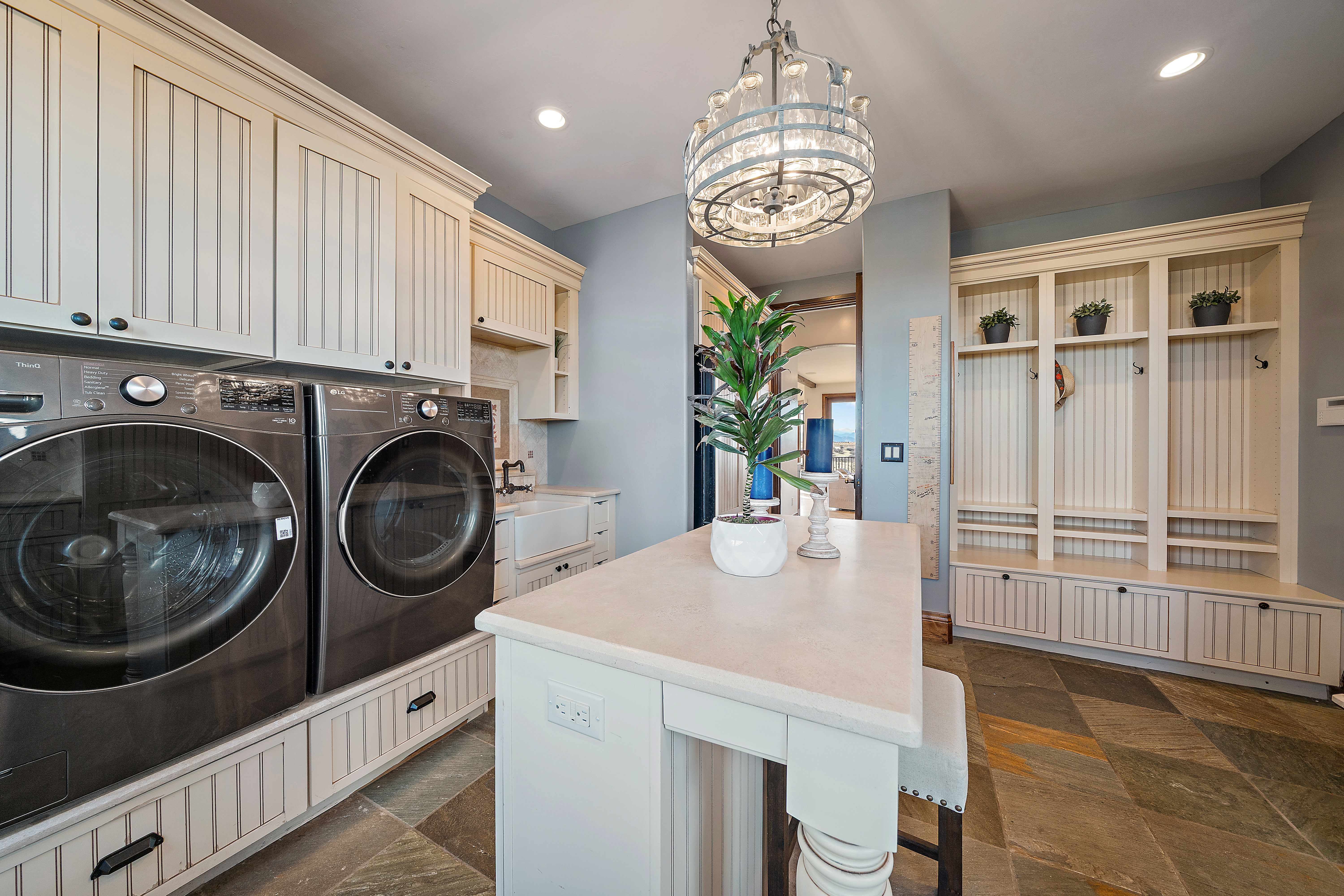 The lower level is built for play and entertaining. New flooring runs throughout this level, and the theater room has updated equipment plus a full bathroom that connects to the guest bedroom and also serves the main entertaining space. Just off the theater is a hidden room that was previously used as a studio, now finished and ready for hobbies, memorabilia, secure storage or a speakeasy‑style retreat. There is a media‑and‑utility space that holds the home’s audio equipment with furnace access. Another hallway closet with laundry hookups could be finished as a true second laundry room.